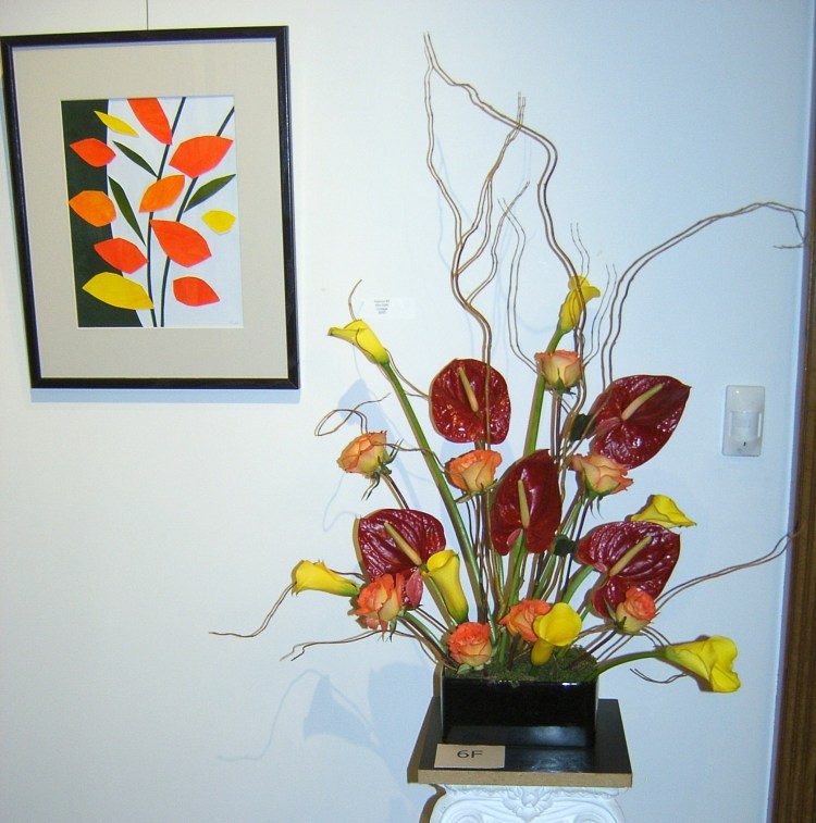 Florists response to artists work, or artists interpret floral arrangements. A unique show where artists and florists created in response to each other’s work. Kim entered about 5 collage pieces, 2 of which are shown above.