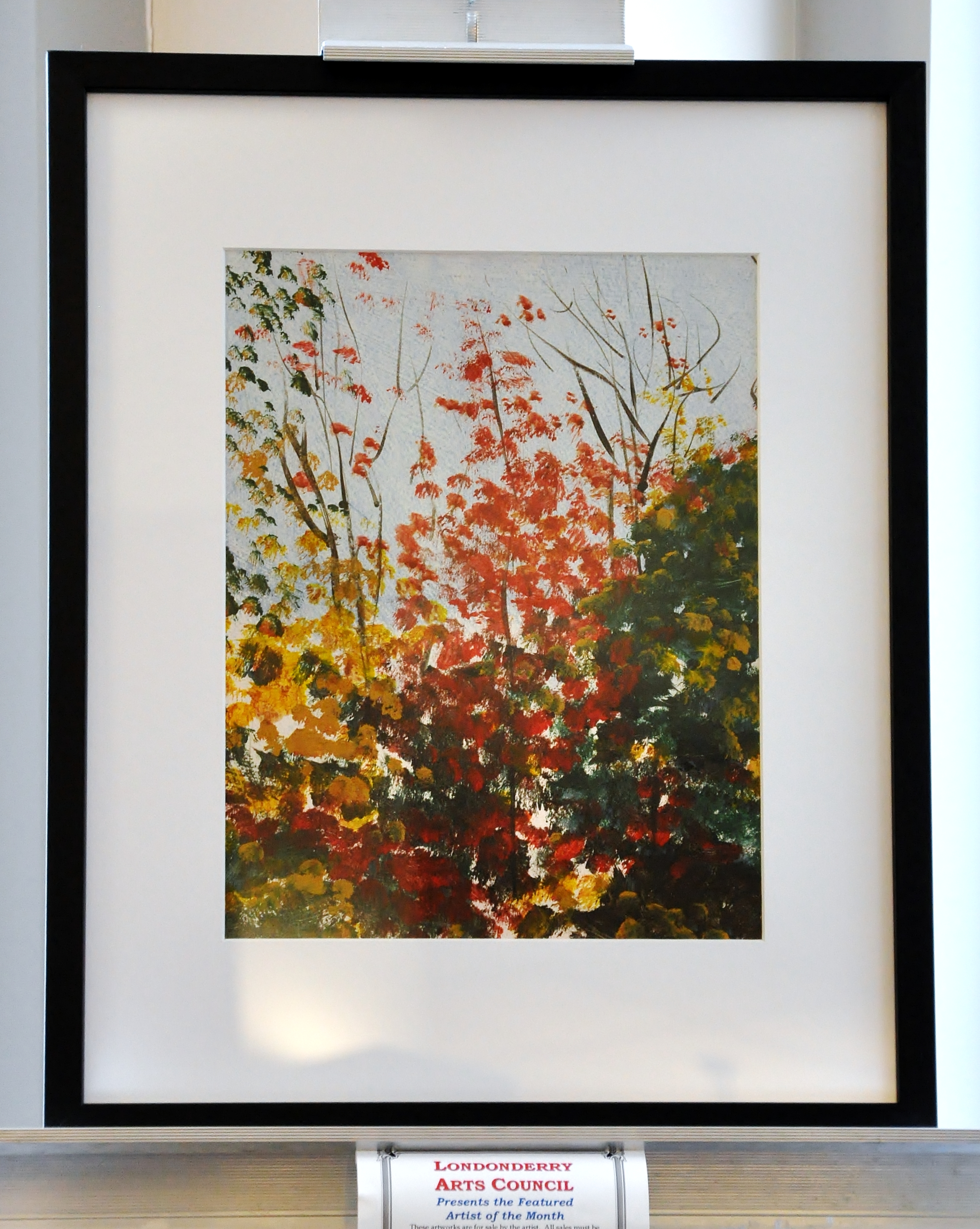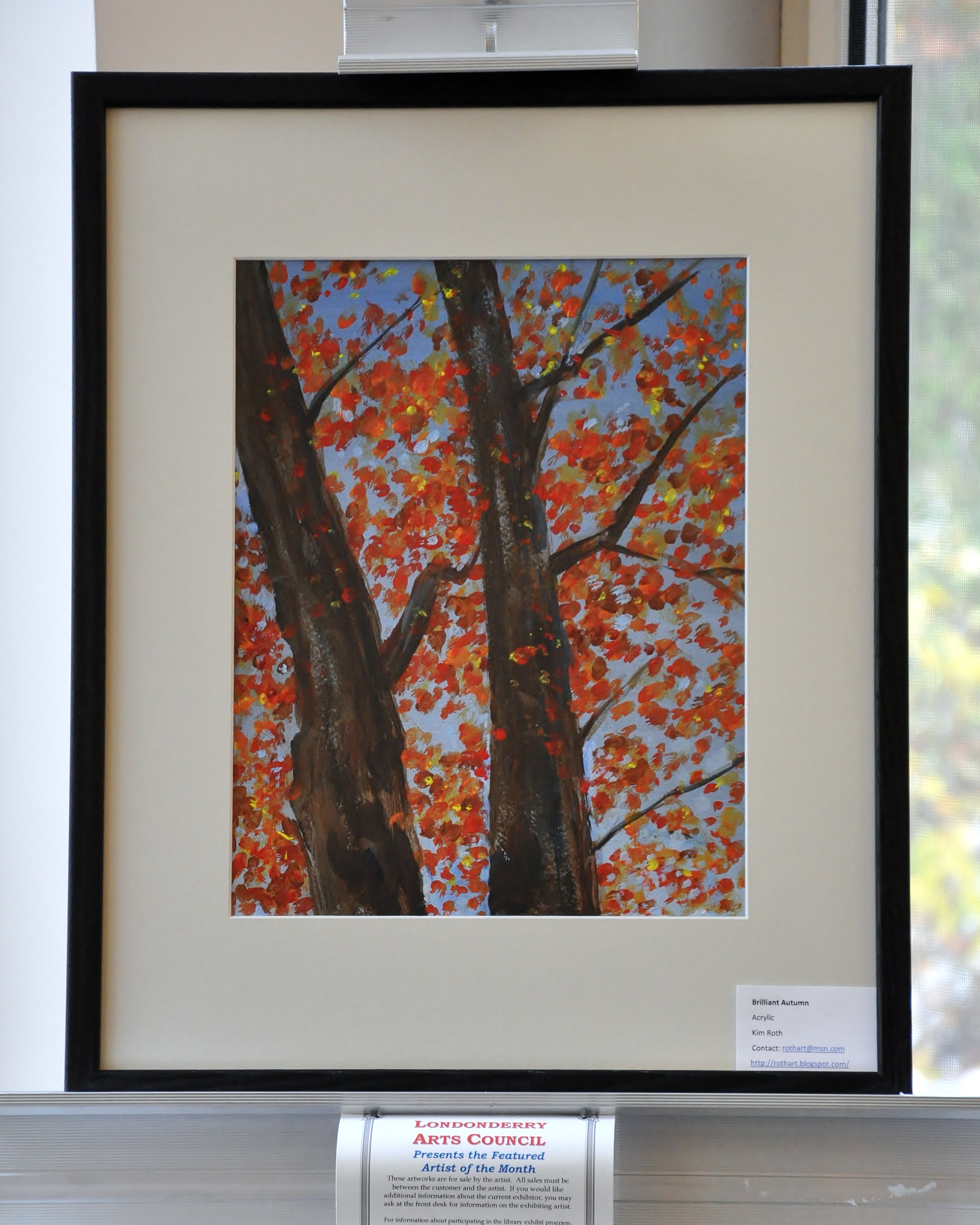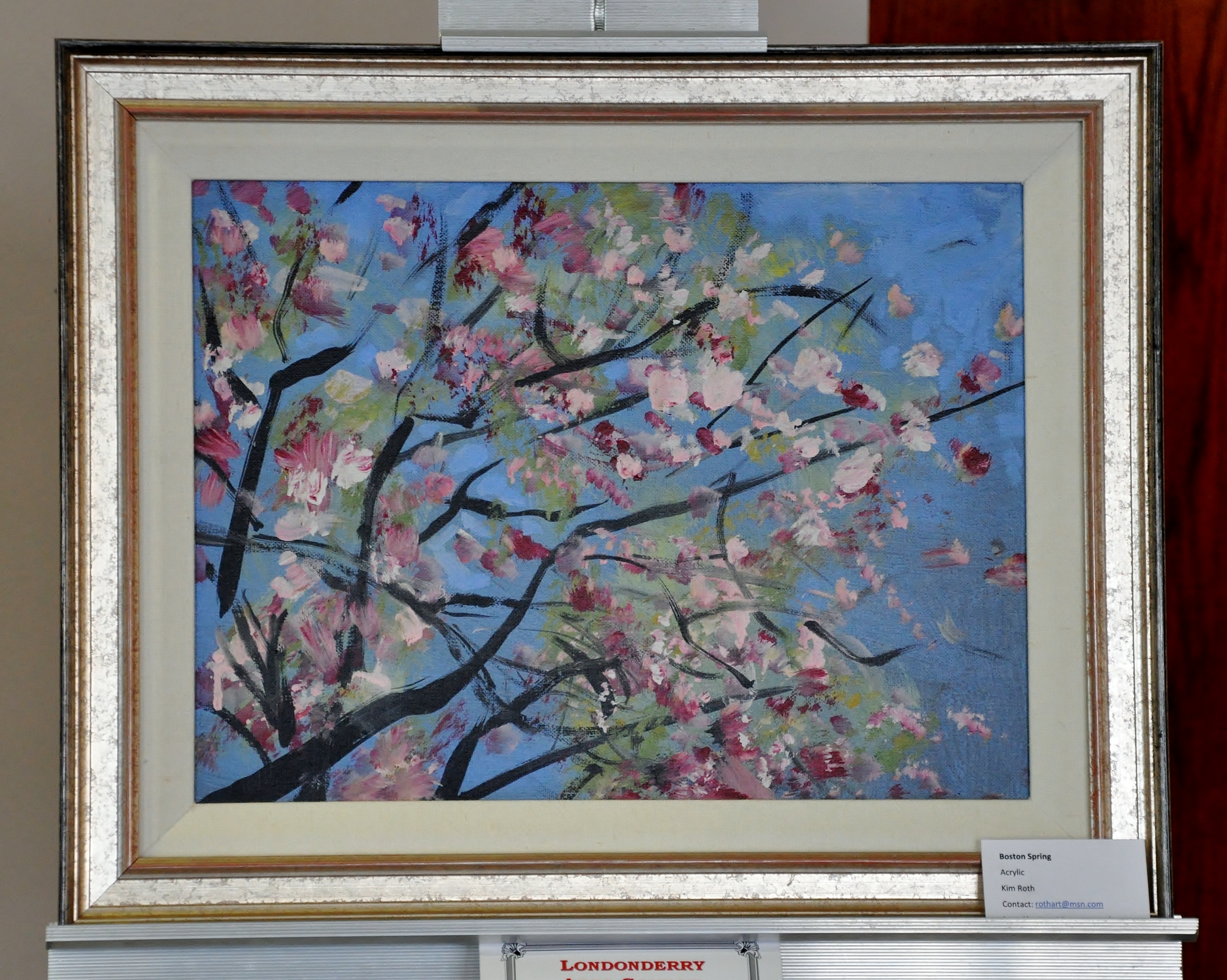 Kim has exhibited work in both group and solo shows, outdoor events and galleries in Florida, Washington DC, Boston, MA, and New Hampshire. The above exhibit was aptly named, “Trees”.